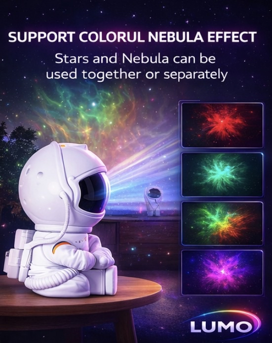 Astronaut Galaxy Projector forvandler dit rum til en rolig og stemningsfuld galakse med smukke lys- og stjerneeffekter. Det unikke astronaut-design kombinerer æstetik og funktion og skaber en afslappende atmosfære, perfekt til hygge, afslapning og moderne setups. Ideel til soveværelse, stue eller som dekorativ belysning.